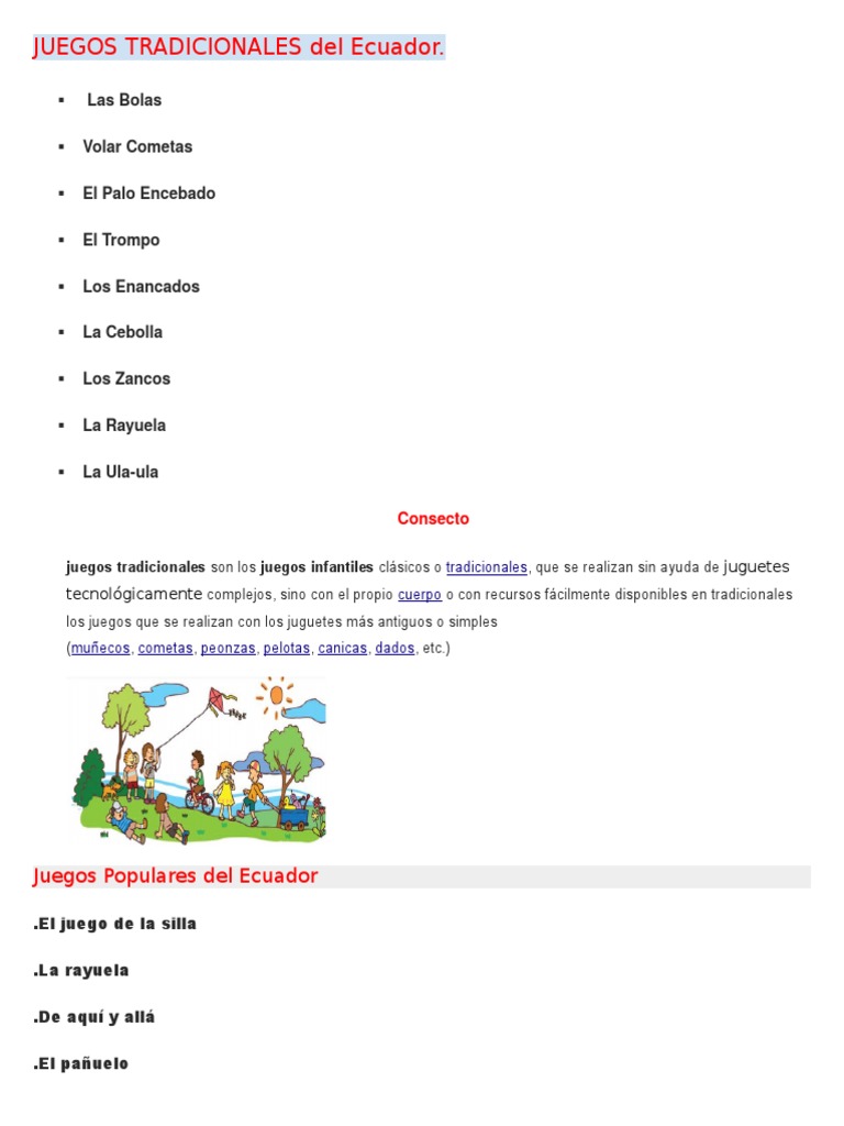 La respuesta correcta es a la pregunta: En este caso como parte de los juegos tradicionales de costa rica se encuentra el juego que se conoce como escondite o escondidos, por lo general se lleva a. Los juegos tradicionales del ecuador sobreviven a pesar de la introducción de la tecnología en forma de móviles o videojuegos, más propios de otros países. Lista de juegos tradicionales de quito (región sierra) y como se juegan. Y podrás debatir con otros usuarios ecuatorianos e intercambiar opiniones, información, ideas, comentarios, etc.