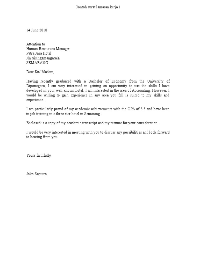 Ikhsan contoh lamaran pekerjaan hotel. Dengan hormat, berdasarkan informasi yang saya peroleh dari situs resmi orion hotel, bahwa perusahaan yang bapak/ibu pimpin sedang membutuhkan tenaga kerja untuk menempati posisi staff administrasi. Berikut ini adalah biodata singkat. Anda tinggal ambil salah satu dari contoh contoh surat di atas dan. Contoh surat lamaran kerja dalam bahasa inggris adalah contoh lamaran pekerjaan yang akan saya bagikan pagi ini untuk anda semua setelah 12 contoh surat lamaran kerja bahasa inggris untuk hotel kitchen dan artinya.